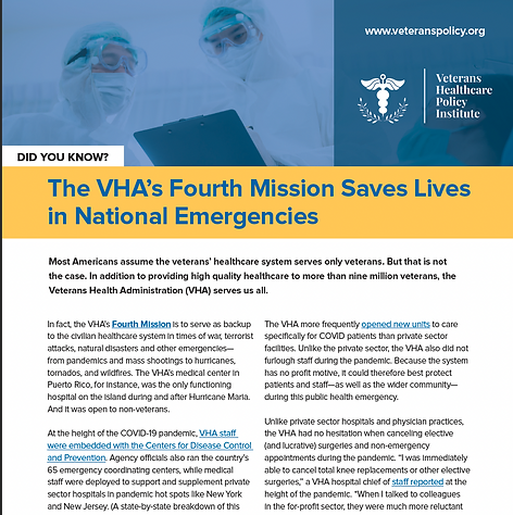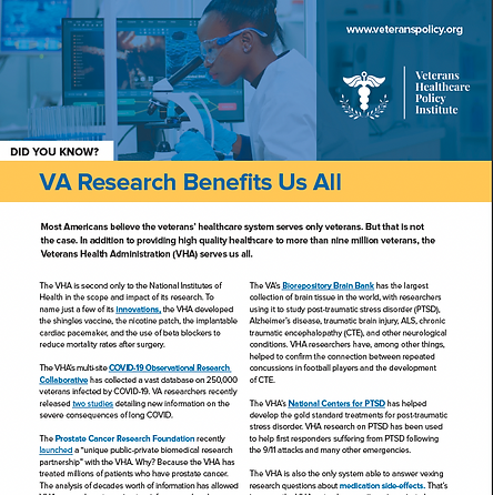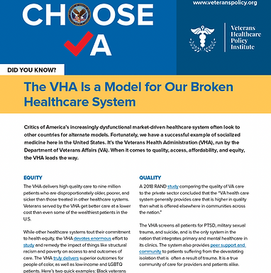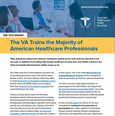 DOCUMENT QUALITY The VA plays a critical and irreplaceable role in caring for veterans. In addition, the VA serves us all. Here’s just a few of the things that make the VA great.
