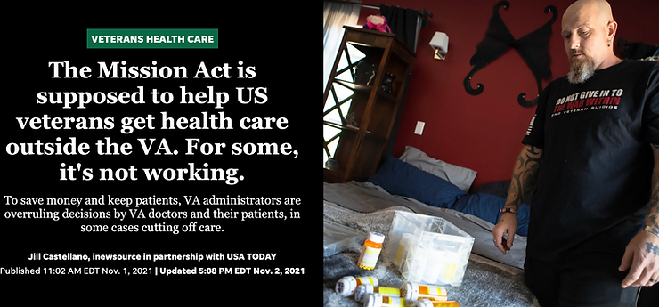 Last week, USAToday ran a feature by reporter Jill Castellano that spotlighted issues around the VA MISSION Act, which is supposed to assure that veterans have easier access to care – outside the VA when clinically necessary.