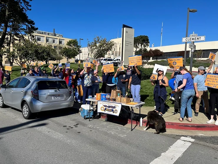 By Suzanne Gordon and Steve Early in Beyond Chron The national wave of worker unrest over hospital conditions that create job stress, burn-out, and short staffing reached the corner of Clement and 42ndStreets in the outer Richmond last Wednesday, Oct. 18. Nearly 100 RNs and other staffers from the San Francisco VA Medical Center (SFVAMC) spent their breaks or lunch hour on an informational picket-line, organized by Local 1 of the National Federation of Federal Employees (NFFE), which represents